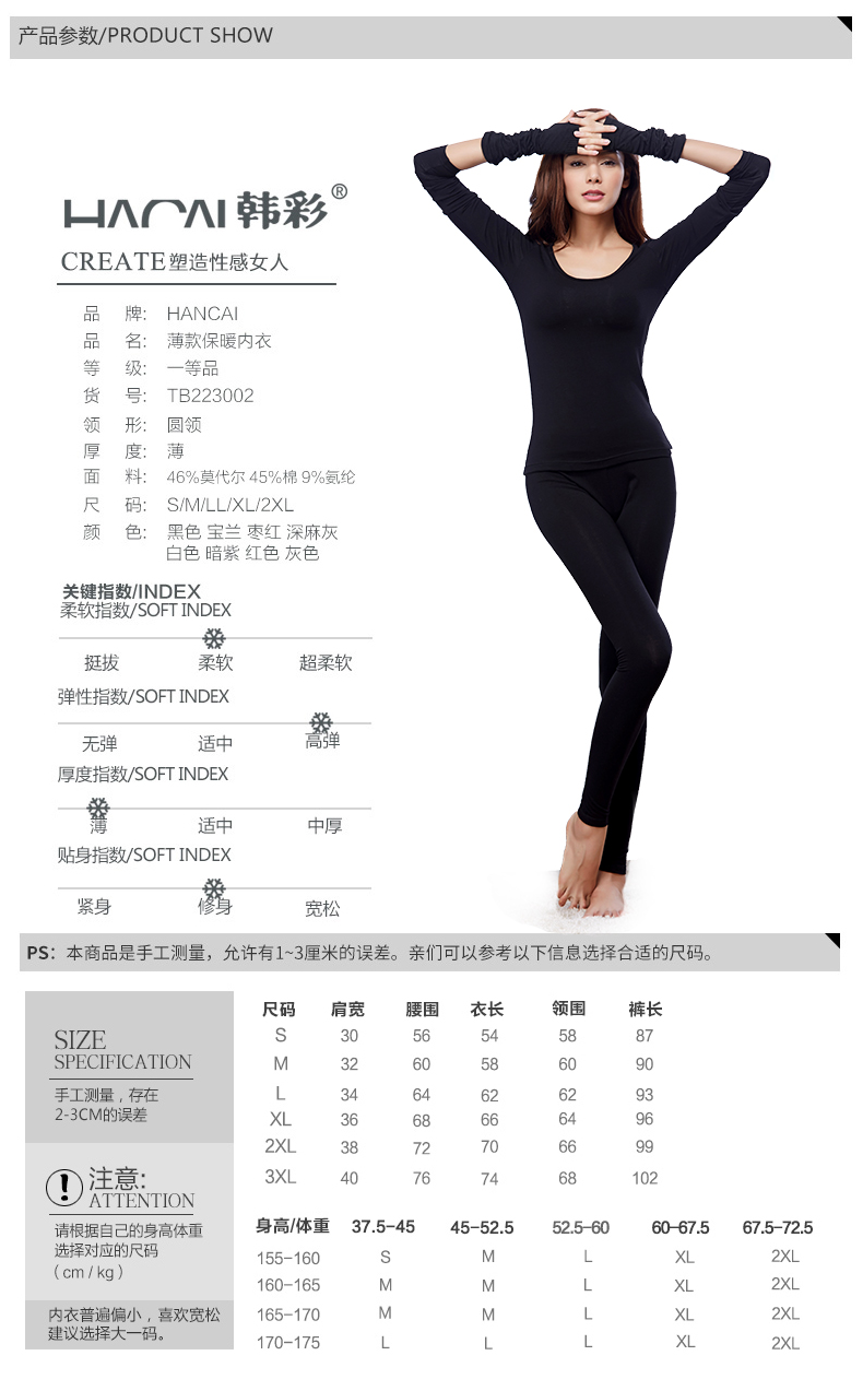 發現網購價格最便宜,韓彩黑色保暖內衣女薄款冬季緊身莫代爾內衣修身美體秋衣秋褲套裝 - 40663837260還曾在 天貓購物商城 類造成搶購熱潮,