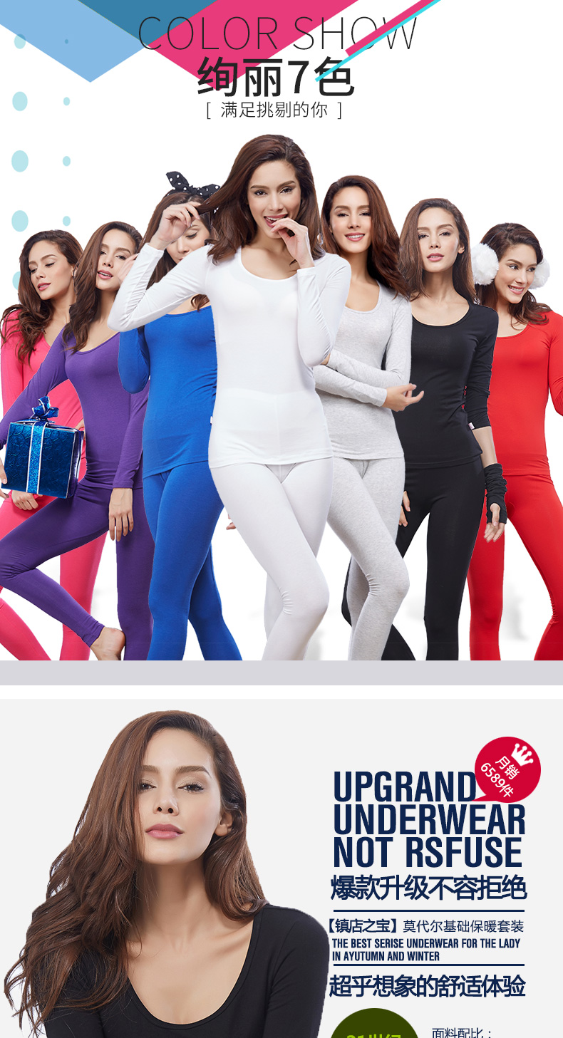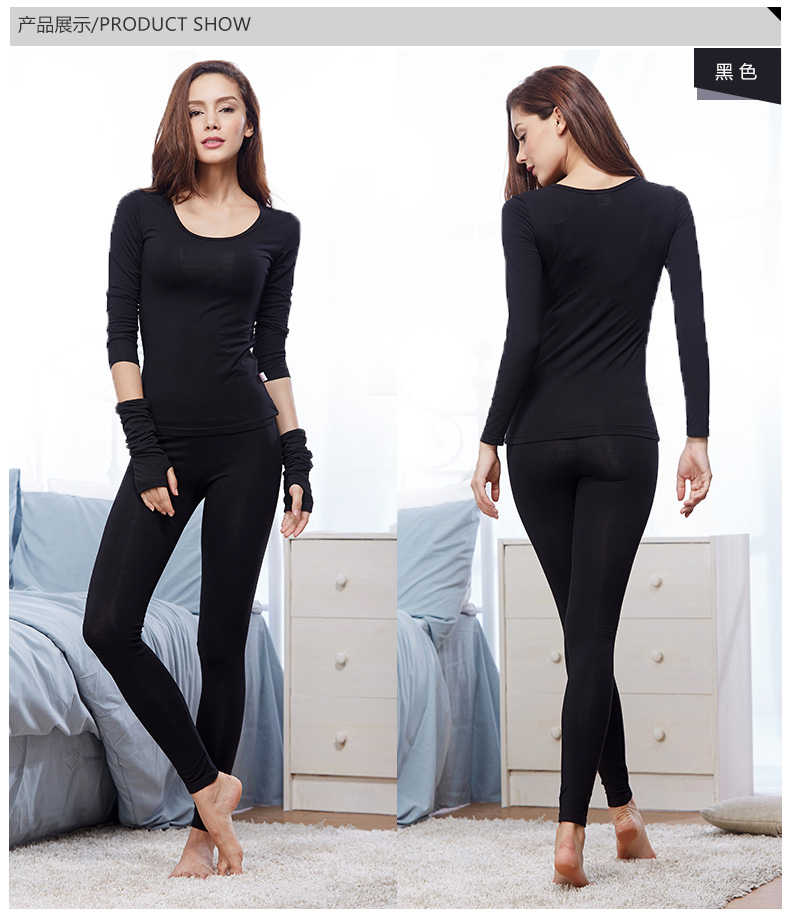 天貓購物商城韓彩黑色保暖內衣女薄款冬季緊身莫代爾內衣修身美體秋衣秋褲套裝 - 40663837260