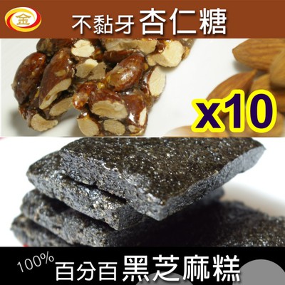 momo年貨年菜~~【金順食味】百分百黑芝麻糕+不黏牙杏仁糖x10包任選(限時加送亞麻子花米酥x1包)