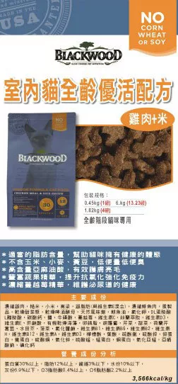 BlackWood 柏萊富 室內貓全齡優活配方(雞肉+米) 6公斤 X 1包我是在這邊買的,如果你也想買可以到這買