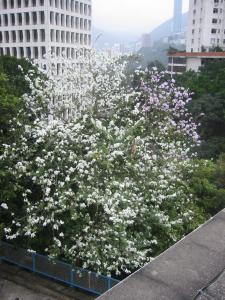 ﹝照片:學校門前的樹開花了,是春天來到了嗎?我的春天,早遺留在八年前了……﹞