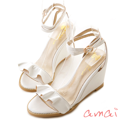 amai一字繞帶繫踝楔型涼鞋-波浪裙擺設計.夏日白界中掀起一股熱潮,