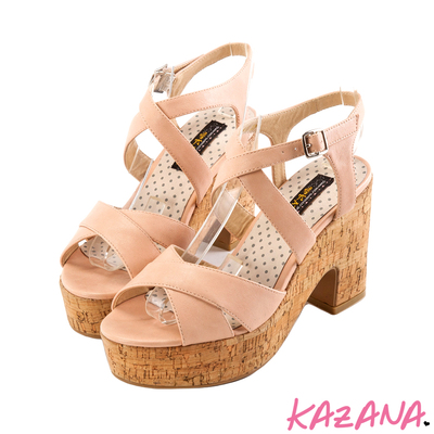 KAZANA雅致輕著-簡約交叉繫踝粗跟涼鞋 粉界中掀起一股熱潮,