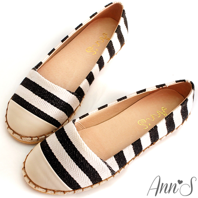 Ann'S甜美百搭.夏日條紋麻繩底懶人鞋*黑