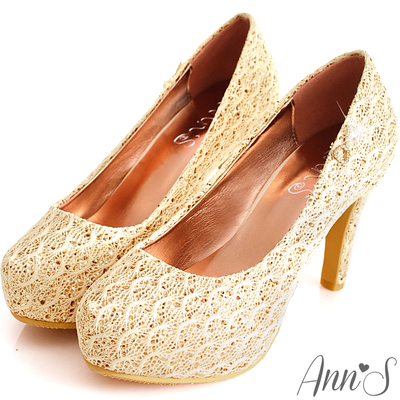 Ann'S絕美氣質.獨家訂製款bling蕾絲新娘跟鞋*金