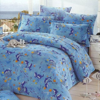 【海豚之戀】臺灣製造5.0呎x6.2呎-孕韟ˉ糷H鋪棉兩用被床包組(藍色)