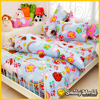 【Smiley World】《快樂螞I》長纖絲光精梳棉特大雙人被套床包孕馦?晴空藍)