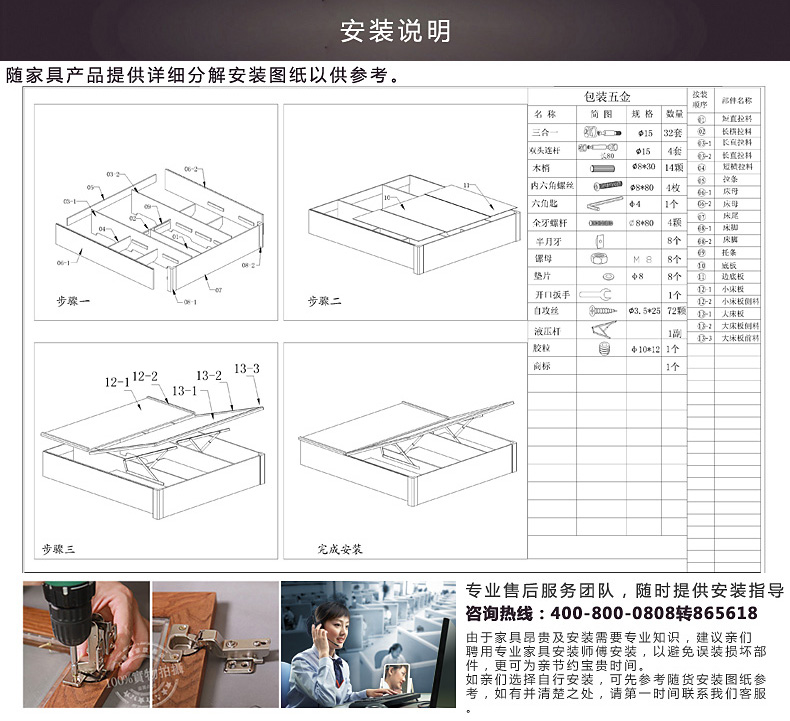 拆裝家具,需由自已組裝產品內部都有附安裝圖紙,或者在當地找安裝師傅