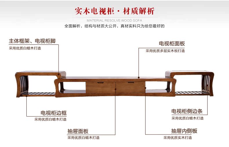 天貓購物商城心居名家 實木電視櫃伸縮地櫃 組合櫃 現代中式實木家具 白蠟木 - 21753915526