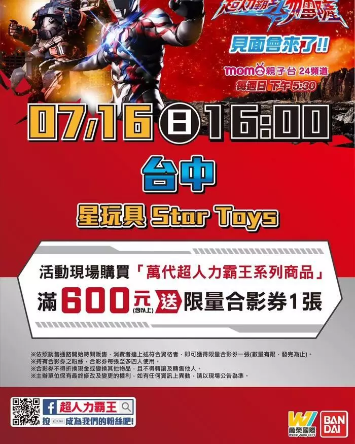 ⭐活動當日,現場購買「#萬代超人力霸王系列商品」