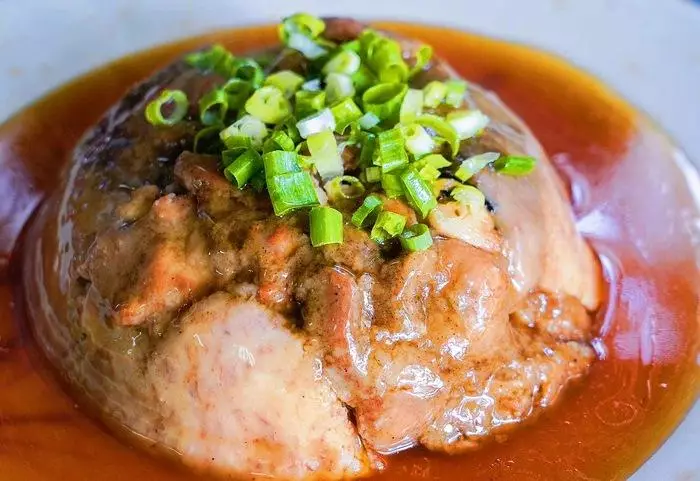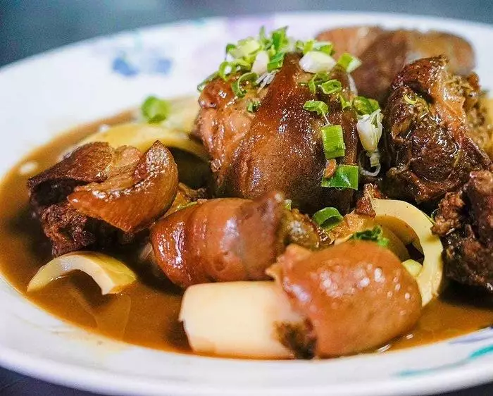 透過獨家秘方熬煮而成的紅燒滷汁,厚實大塊的豬腳,吸附滿有香氣的滷汁,再淋上柔軟可口的麵線上,是許多大小朋友們讚不絕口的美味。