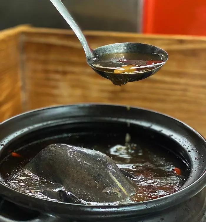 將烏骨雞燉得軟爛入味,以黃金比例熬製的中藥湯頭,濃郁卻不苦澀、清香回甘,嚐過一次就念念不忘的滋味。