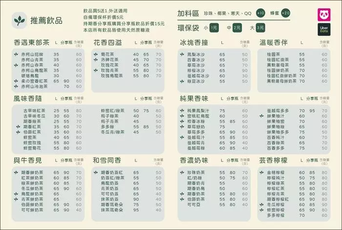 不僅提供美味回甘的茶飲,為了讓顧客每天都感受到小確幸,台東大麻里必喝飲料店推薦『期香茶棧』每週一純茶類買二送一,每周二則是奶茶類買二送一,甚至每日買五送一杯25元的飲品,活動包含外送,這是對顧客的一點小心意,期待每位顧客在每一次的品味中,都能感受到『期香茶棧』用心之處。