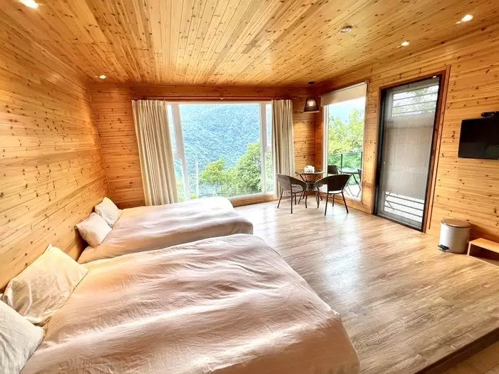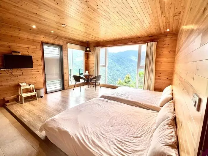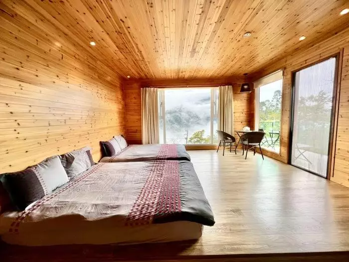 『拉拉山36號農場』的每個房間都是一個獨特的天地,這裡不僅地處高海拔位置,還有令人心曠神怡的群山景致,無論是樓中樓的六人房還是四人房,抑或是八人房,都以自然、簡約、樸實的風格設計,舒適而不失溫馨,房內的落地窗讓陽光照耀在身上,令人仿佛置身於大自然的懷抱中,鄰近夜晚時躺在床上,欣賞夕陽西下、雲海翻滾,望著窗外星星點點,彷彿與自然共舞,共譜一曲動人的樂章。
