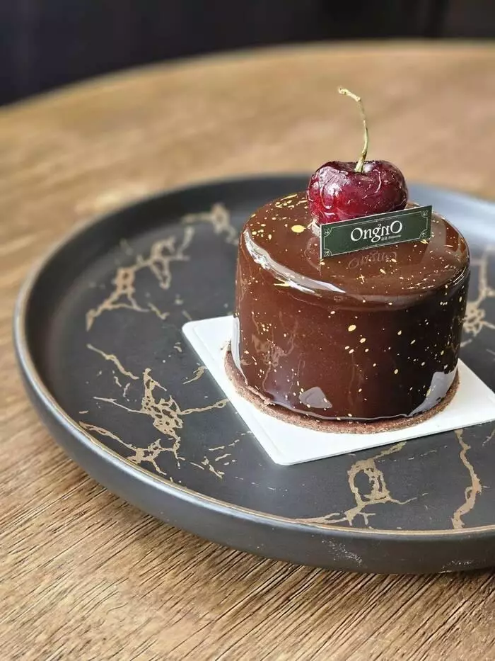 威士忌櫻桃慕斯蛋糕的層次感豐富,黑櫻桃的果香與濃郁的巧克力相互呼應,再以威士忌甘納許和酒漬櫻桃提升風味,帶來一種獨特的大人味,每一口都是精緻的享受,細膩的口感與馥郁的酒香在口中久久不散,讓人欲罷不能。