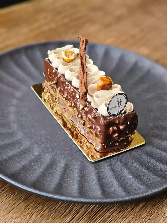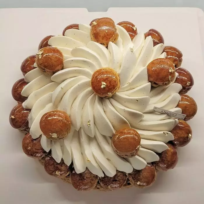 在法式甜點中,聖多諾黑以其豐富的層次和多樣的口感為人所喜愛,是慶祝節日的絕佳選擇。千層派皮的脆香,與香緹奶油和卡士達餡的完美結合,添加了焦糖泡芙及海鹽焦糖醬,帶來苦甜交織的享受,每一口都是一場愉悅的味覺旅程。