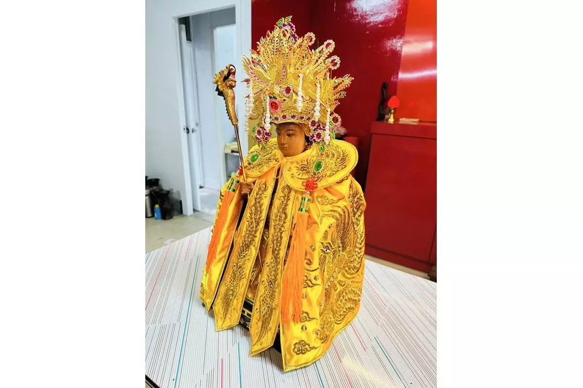 來自台北的林女士是一名廟會活動的主辦人,她需要為廟內的神像訂製一套獨一無二的神明衣與帽。林女士希望這套服飾能以金色與紅色為主,展現莊嚴與祥和的氛圍。老闆娘親自設計並刺繡了一套精緻的神明衣帽,融入特製的龍鳳圖案與象徵性的吉祥紋樣,最終成品不僅符合林女士的期望,更獲得了廟方與信眾的一致讚譽。