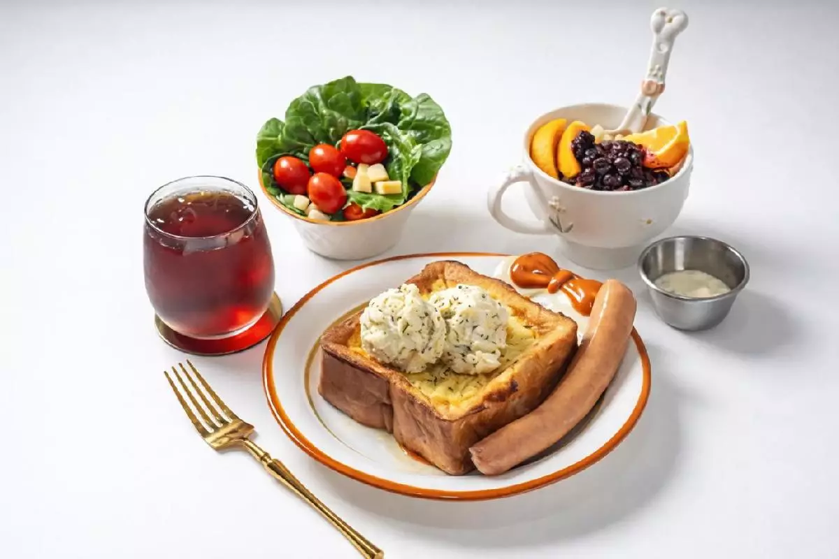 飲品部分則分為咖啡、氣泡飲、奶茶、茶類等,主打項目包含美式與拿鐵($100~$120)、葡萄氣泡飲與蜜桃氣泡飲($100),以及紅茶拿鐵、焙茶拿鐵($120~$130)等。整體風格延續品牌調性,不花俏、不繁複,讓每一口都回歸純粹與日常的溫度。