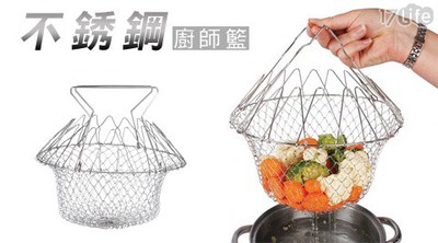 團購3折起-宅配廚具界的變形金剛!可化身油炸鍋、過濾器、水果籃,用途多多!不鏽鋼製造,可折平收納,廚房的好幫手!