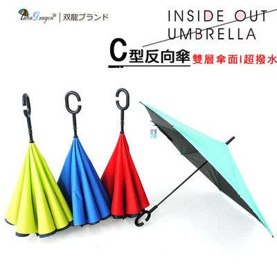 【雙龍牌】新式C型握把。雙層防潑水反向傘(雙層傘布反向傘超潑水防風反折傘晴雨傘車用傘A5842C)特價