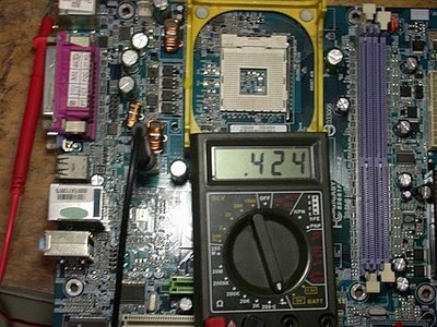 拿到板子 一堆 ~給它洗澡...用廚房的(魔*零)超好用的 ~---洗玩 用空壓機吹乾 .在太陽下 曬乾..恩恩~就開始研究囉 ~..上電 RESET 閃一下 FF... 電壓正常 CPU各方面電壓...