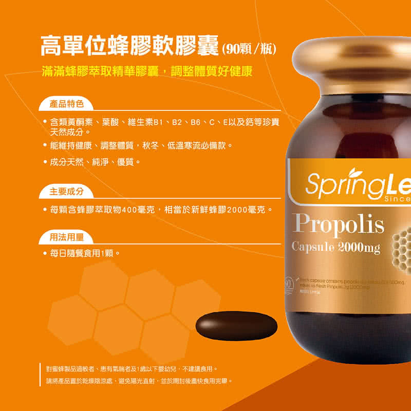 ※每顆含有蜂膠萃取物400毫克,相當於新鮮蜂膠2000毫克。