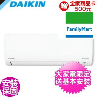 本商品若遇原廠改款,會聯繫消費者免費升級新款。型號【大金】坪變頻冷暖分離式配件:說明書、保證書、遙控器型號:室內機外型尺寸寬高深室外機外型尺寸寬高深電壓:冷氣能力最大額定最小:暖氣能力最大額定最小:產地泰國保固年限:全機三年、壓縮機年保固※本商品不提供試用,如拆箱或插電後皆會影響您退換貨的權益◎商品一經拆箱定位、安裝插電後,非新品瑕疵需原廠鑑定,恕無法辦理退換貨。◎價格包含【標準安裝】【舊機回收】【分期利率】本商品正常為三至五個工作天內聯絡配送●若贈品隨貨寄出,如未預先告知則隨機寄出,贈品無法更換●本商品為優惠價格,恕不參加原廠贈品活動。●如遇家電旺季、或任何配送異常狀況會盡快告知●配送時間則以物流聯絡約定的時間為準!『偏遠地區及外島不送!』●如無電梯,樓含以上,現場收取樓層搬運費元樓。※本商品圖片為示意圖,僅供參考。※圖檔略有差異,實際以原廠出貨為主。※本商品保固期限請依原廠公佈為主。※本產品規格若有變動敬請參照實際商品為準。※更多詳細說明請至官網查詢。注意事項!購買前必看●購買前,請先確定家電擺放位置空間的尺寸,及樓梯、電梯、門寬等運送路徑寬度,尤其轉彎處至少要大於商品寬度〝公分〞●依廢四機回收冰箱、洗衣機、冷氣回收機體須以人力可搬移之原則。●如搬運商品如須拆門需先自行處理。●商品送到府,拆箱檢查當下發現有任何撞傷或瑕疵,請當下馬上拒收,並且來電告知客服。●退、換貨商品必須是全新狀態不得有刮傷,且有完整的包裝,包含外紙箱、配件紙箱、保麗龍、保護袋、贈品等廠商及所有附隨文件或資料之完整性,缺件刮傷皆【拒絕退換貨】。●業者無任何協助退貨整新之義務。●大家電部分只要拆箱、定位、插上電源一經安裝,將會影響退貨權限並無法退回已回收之舊機。●贈品如有短缺我方保有變更之權益暫時性短缺將由廠端另行安排時間寄出●欲參加原廠相關活動如遇逾期或未依活動內容申請我方不負擔保責任