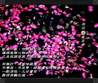 《淡黃柳》落花 狂風一夜,何許庭花碎。 遍掃堂階心惻矣。 已見枝頭落寞,誰又嫌他太憔悴。 苦無計,憑窗任飛墜。 半零落、半危繫,細聞還有幾聲淒厲。 一點清愁,九分蕭索, 難得黃...