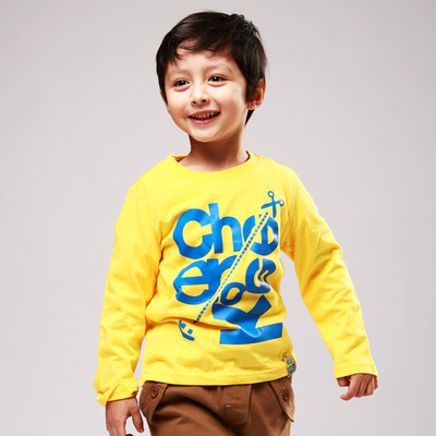 最新推薦-男童字母印花長袖T恤 (明黃)