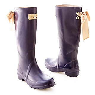 【熱銷女鞋特賣會】-【Ayaka】夢幻緞帶.一體成型天然橡膠中高雨靴(藍紫)