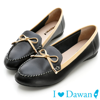 【熱銷女鞋特賣會】-【IDAWAN愛臺灣】臺灣製牛皮撞色蝴蝶結莫卡辛(黑)