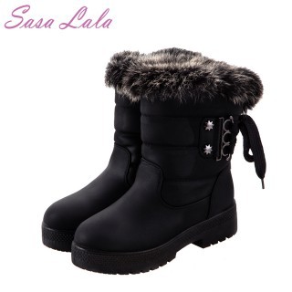 【熱銷女鞋特賣會】-【SasaLala】兔毛滾邊防潑水綁帶雪靴內裡全毛8811(黑色)