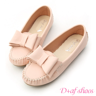 【熱銷女鞋特賣會】-【D+AF】俏皮可愛-MIT大蝴蝶結莫卡辛豆豆鞋(裸膚粉)
