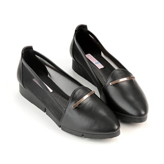 【ESTELLA】牛麂皮金屬拼接樂福低跟鞋(咖)