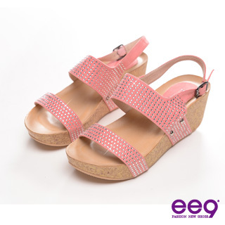 【專櫃女鞋85折】-【ee9】摩登曲線-寬版水鑽休閒楔型涼鞋(甜美粉)
