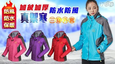 最近在購物網上看到真禦寒加絨加厚防水防風三穿外套加贈圍巾"