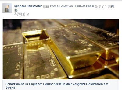 ▲Michael Sailstorfer在英國福克斯通海灘裡埋了30條金條。(圖/翻攝自Michael Sailstorfer的臉書