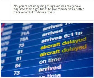 1.這不完全是你的想像,航空公司確實會「調整」航班時間,讓抵達告示板好看一些