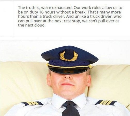13.老實說,我們累斃了!飛行員的工作規章允許我們連續值班16個小時,比卡車司機多更多。而且卡車司機可以路邊停車到便利商店買個蠻牛甚麼的,我們沒辦法把飛機停在雲邊