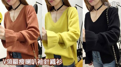 【會員專屬優惠】【買一送一】V領顯瘦喇叭袖針織衫 共--周年慶限時特價