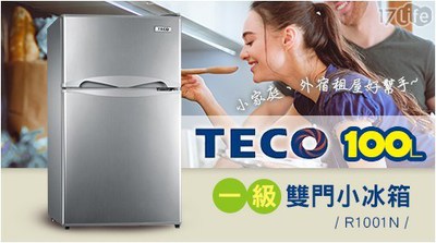 【限時優惠卷】【TECO東元】100公升一級能效小鮮綠雙門冰箱-纖絲銀R1001N - R1001W白色-找信用卡刷卡購買折扣