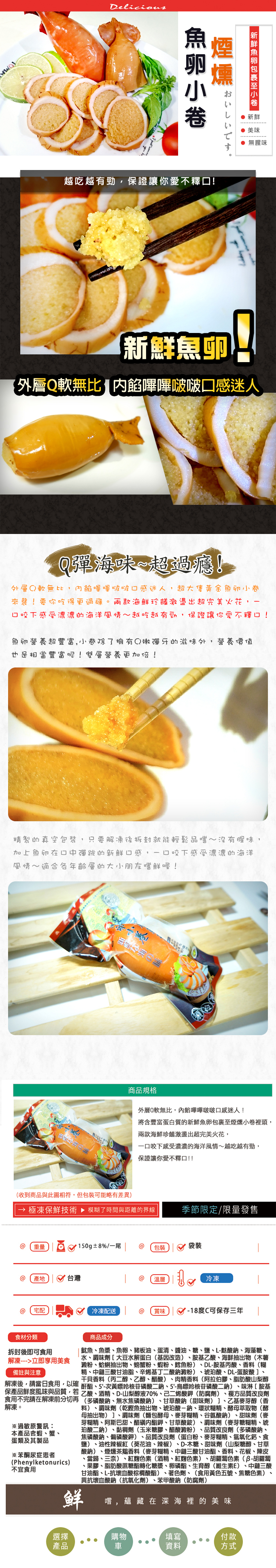 【限時折扣】煙燻魚卵小卷(150g-尾)-線上購物優惠
