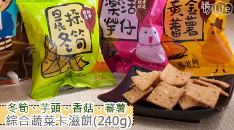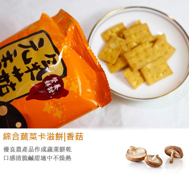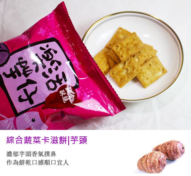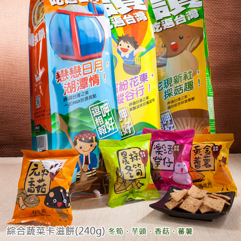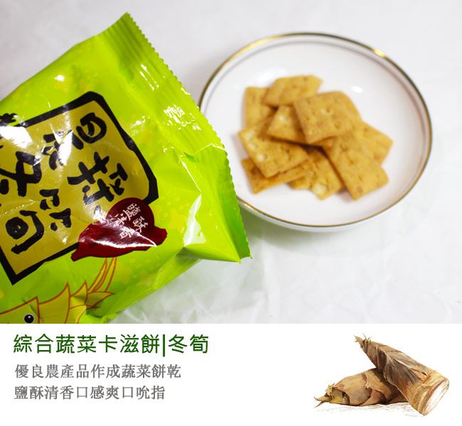綜合蔬菜卡滋餅(240g)冬筍、香菇、蕃薯、芋頭,四大人氣古早味餅乾,澎派登場,口齒留香一口接一口涮嘴到停不下來!