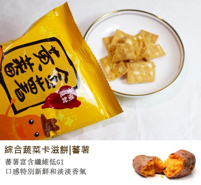 使用優良農產品作成蔬菜餅乾,口感清脆鹹甜適中不燥熱