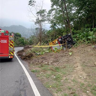 上山救援火燒車!嘉縣消防車返隊「過彎翻覆邊坡」