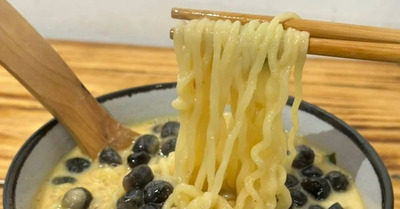一名女網友分享,之前在Youtube用珍珠奶茶跟泡麵來做成豚骨拉麵,她看得十分好奇,便一時興起用「豐力富奶粉跟安城湯麵,再挖出放在冷凍庫的即食珍珠」馬上做實驗。