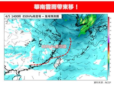 氣象專家林得恩今(5日)發文提醒,由於高層短波槽的移入,加上環境水氣明顯增加,中部以北、東北部及東半部降雨機率高。氣象署預報,4/7至4/9因為華南雲系影響,雨勢將一陣一陣,4/10至4/11鋒面影響,天氣更加不穩定;4/12至4/14台灣附近水氣仍多。