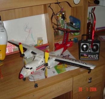 星期天帶著小朋友去買獎品,小土人挑了遙控飛機,今天回到家他就吵著要去放,沒辦法只好帶著去阿公菜園放,沒想到第一次試飛就把機翼給折斷了,害得我從6點半就要幫他修飛機,修好了明天又要去飛了.