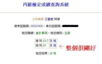 哇~~~~ 開心開心 聽到有人打電話找我 整個就是很緊張 過了過了!!!!! 術科64.5 學科60 ㄧ知道過了 整個人在家裡狂奔+歡呼耶~ 不是...