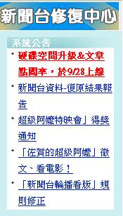 上週曾向大家預告過,新聞台本週將推出兩個新功能,一是所有站台的硬碟空間,從50MB全面升級成100MB,另一個是恢復文章點閱率,如今上線時間已經確定,這兩項功能將於9/28正式上線囉!現在就來為台長們說明。
